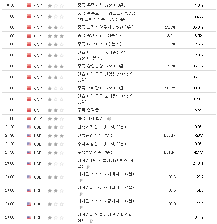 * 미국의 각종 건축관련 지표들이 발표될 예정