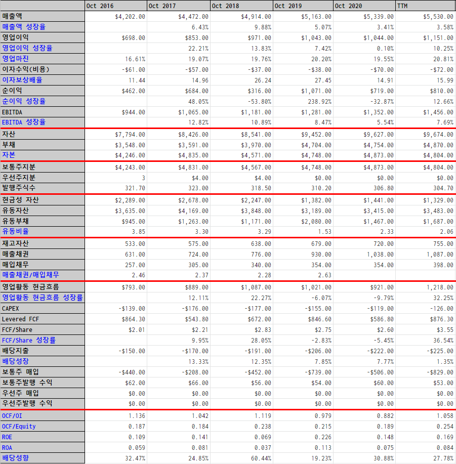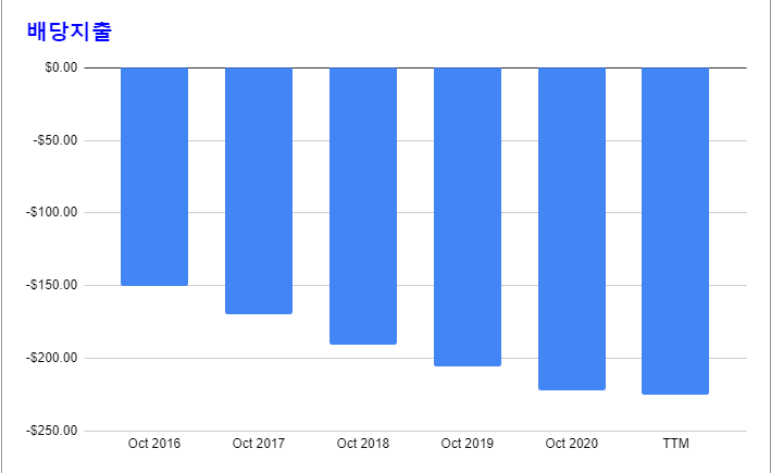* 자사주 매입을 꾸준히 하면서 유통되는 주식수량이 조금씩 감소한다.