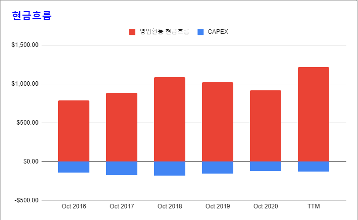 * 잉여 현금흐름은 최근에 급격히 개선되었다.