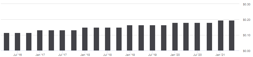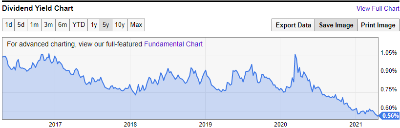 * 시가배당률 추이 : 배당의 성장 대비 주가가 급상승하여 시가 배당수익률이 많이 낮아졌다.