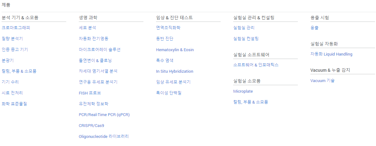 * 생명과학, 화학 등의 분야에 필요한 실험에 필요한 분석 장비와 서비스를 제공하는 업체이다.