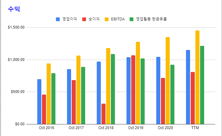 * 감가상각비, 세금을 내기전의 순이익인 EBITDA는 최근 5년간 높은 성장을 보인다.