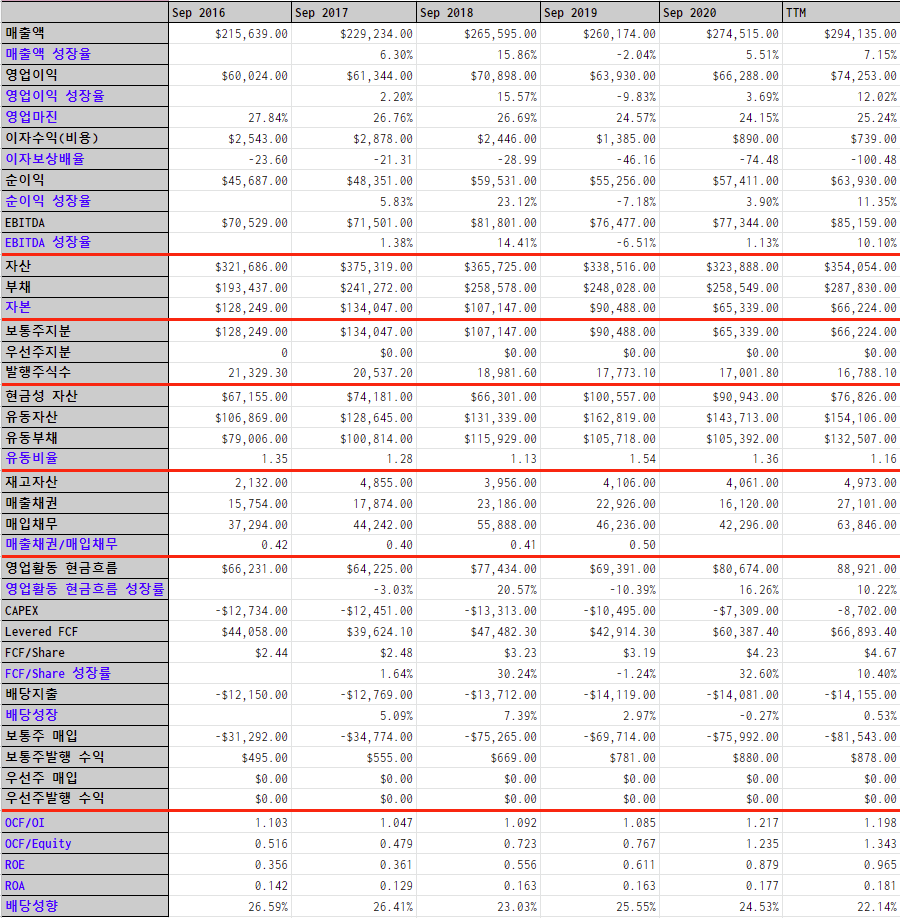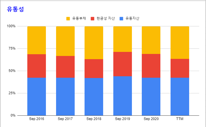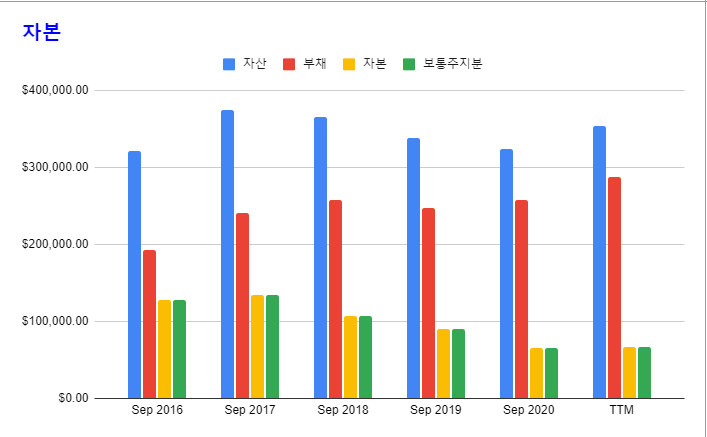 * 앞 서본 자본추이를 봤을때 꾸준히 자기자본을 줄이는 모습을 볼 수 있다. 그러나 회사의 수익은 나빠지지 않는 모습을 볼 수 있었다. 개인적으로는 이러한 측면에서 이 회사에 추가점수를 부여하고 싶다.