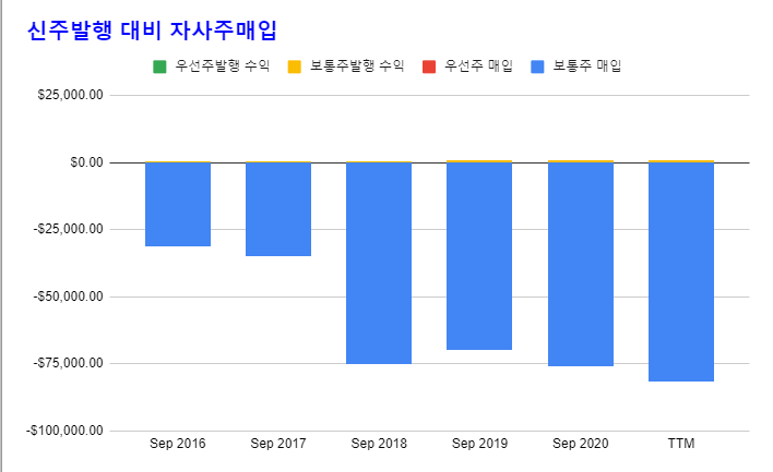 * 2018년 자사주 매입의 규모를 큰폭으로 늘렸고 이후 2018년 수준의 자사주 매입을 꾸준히 하고 있는 중이다.