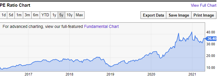 * 지난 5년간 PE Ratio 추이는 아래 그림과 같다.