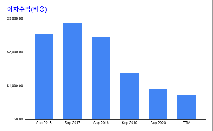 * 회사의 이자비용은 꾸준히 감소하는 추세가 돋보이며 기업이 재정적으로 점점 우량해지는 모습을 볼 수있다.