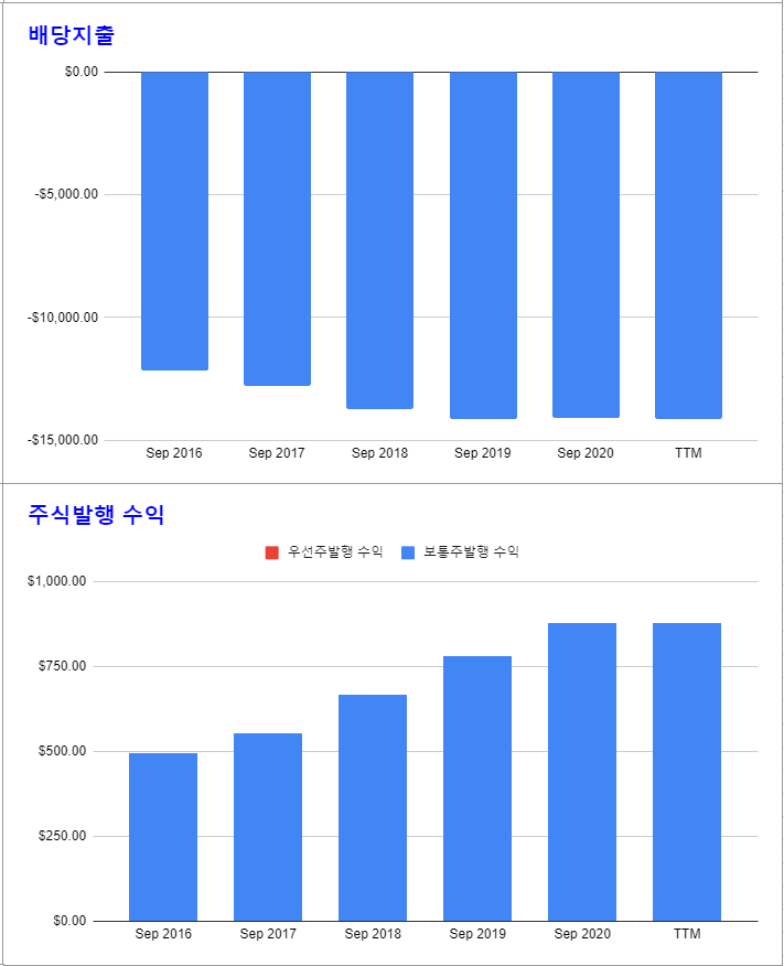 * 배당지출 대비 신주발행의 규모는 거의 없는 수준이라 봐도 무방하다.
