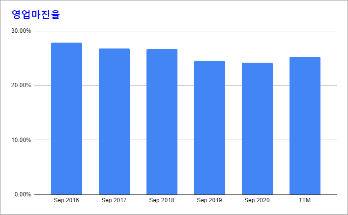 * 영업마진률은 25%중반대 수준을 유지하는 수준으로 보인다.