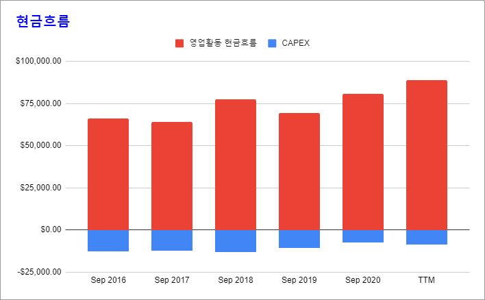 * 잉여 현금흐름이 꾸준히 상승하는 추세를 보인다.