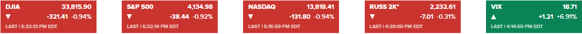 * 주요지수 하락 마감 (다우 : -0.94%, S&P500 : -0.92%, 나스닥 : -0.94%, 러셀2000 : -0.31%)