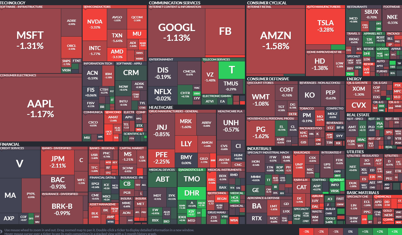 * 헬스케어(의료 장비, 연구 장비)섹터를 제외한 전반적인 하락마감