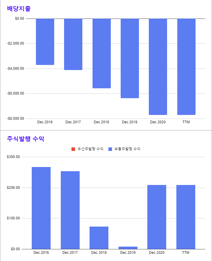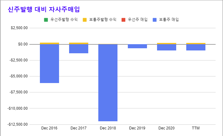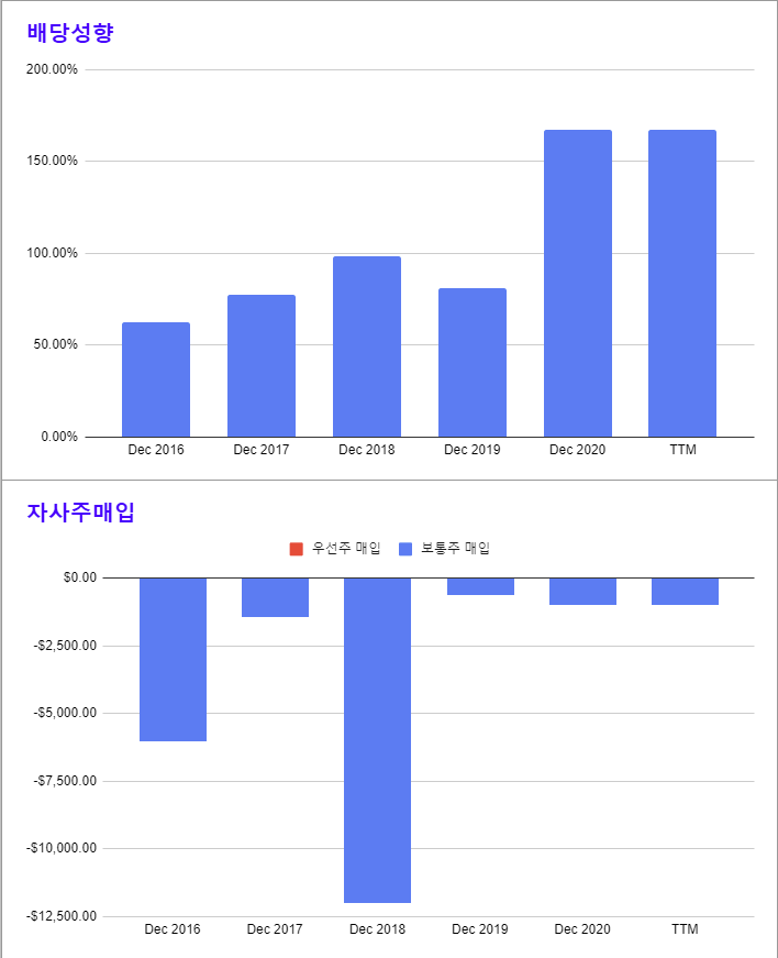 * 배당의 증가는 꾸준하지만, 자사주의 매입은 최근 2년간 저조한 수준이다.