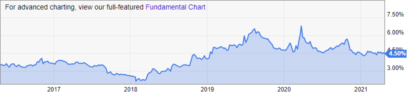 * 지난 5년간 시가배당 수익률 추이는 아래와 같다.