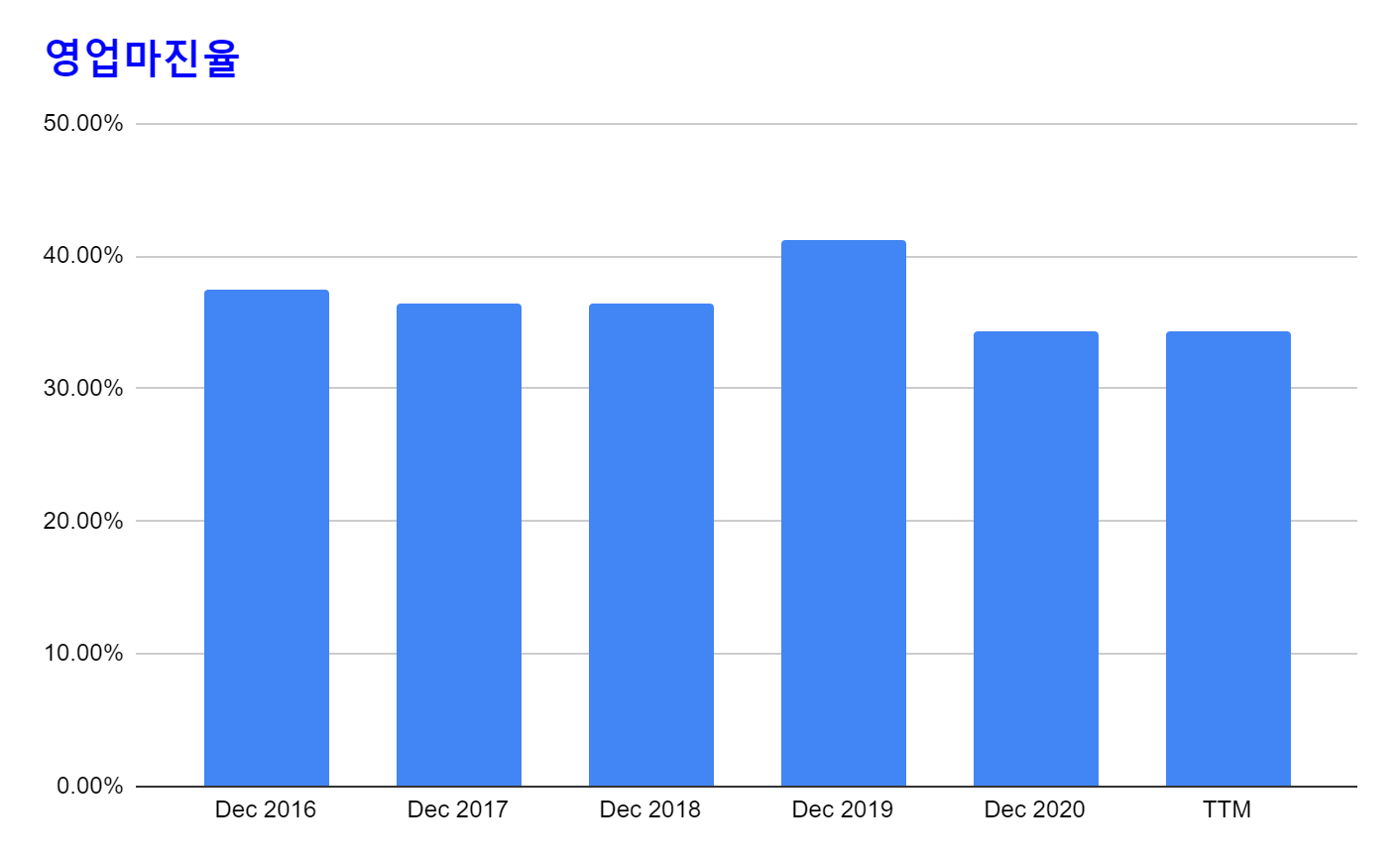 * 영업마진율은 35~42% 정도 수준을 유지하는 중이다.