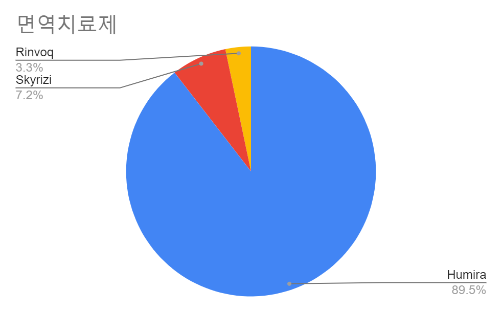 * 휴미라의 비중이 90% 정도로 대부분 차지함.