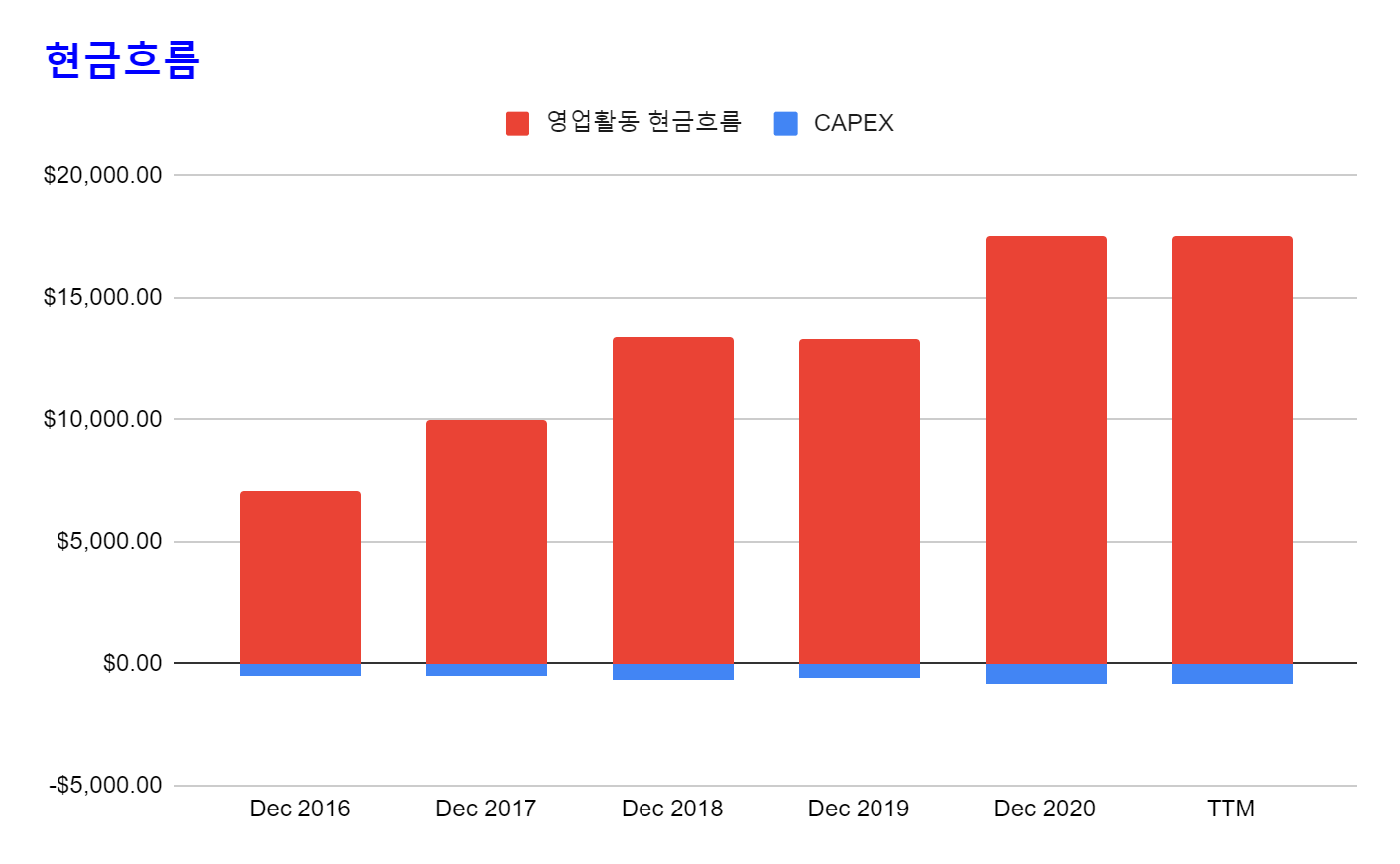 * 지난 5년간 영업활동 현금흐름이 꾸준히 증가하고 있다.