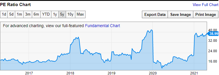 * 현재 이 회사의 PE Ratio는 약 40.46배 수준이다.