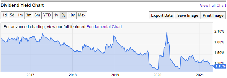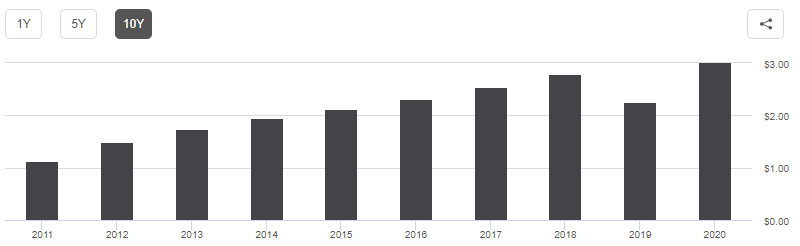 * 배당 성장은 꾸준히 이루어지다가 2019년 감배가 되어서 배당 연속 성장 기록은 0년이다.