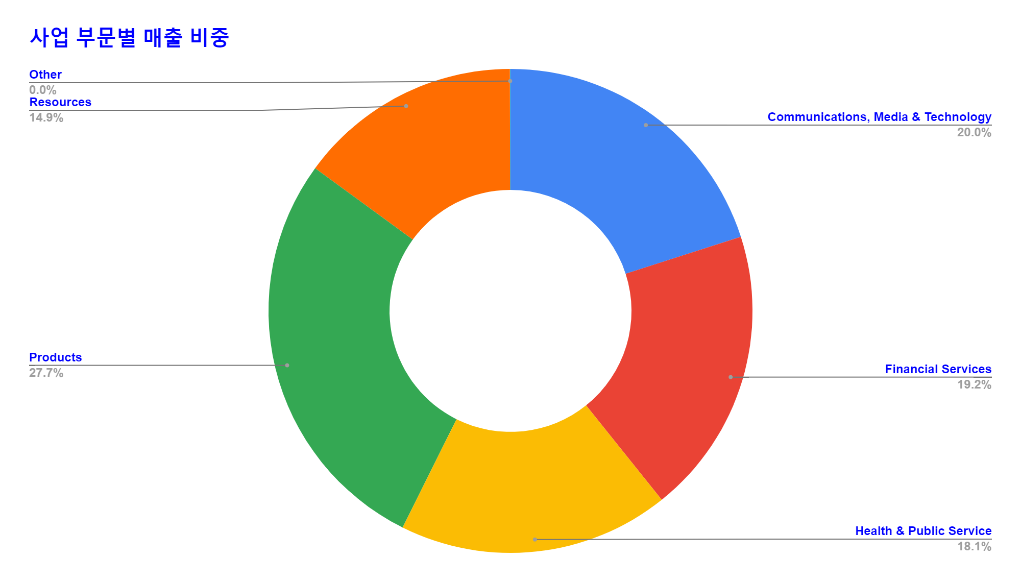 * 다양한 산업 부문에서 균형적으로 매출 구조를 가지고 있다.