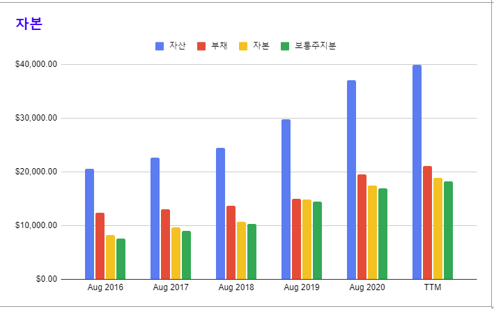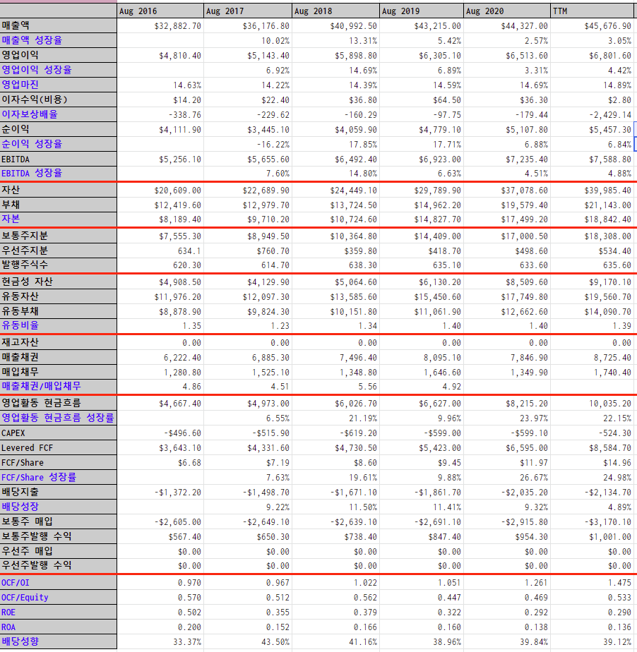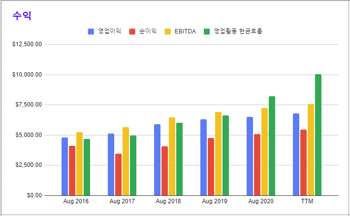 * 2017년 이후 영업이익, 순이익, 영업활동 현금흐름이 꾸준히 성장하는 모습을 보인다.