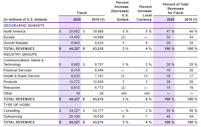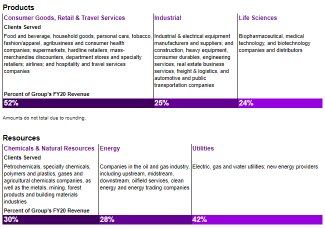 * 매출의 [27%] : 공업, 소비재, 리테일 및 여행서비스, 생명과학 산업분야에 대한 서비스 매출