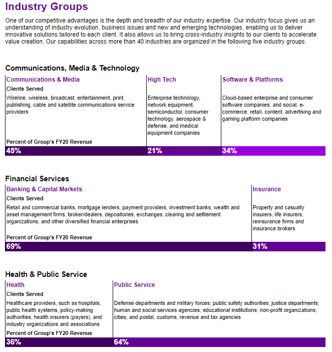 * 다양한 산업 분야에서 여러 가지 IT 기술과 컨설팅 서비스를 제공한다. 대부분의 산업 분야를 모두 지원할 수 있는 역량을 가진 것으로 파악된다.