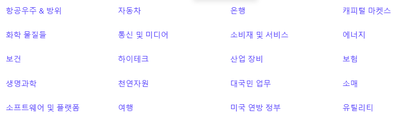 * 이 회사는 아래 내용과 같은 서비스를 제공한다. 크게 5개 산업군으로 구분하여 서비스를 제공한다.