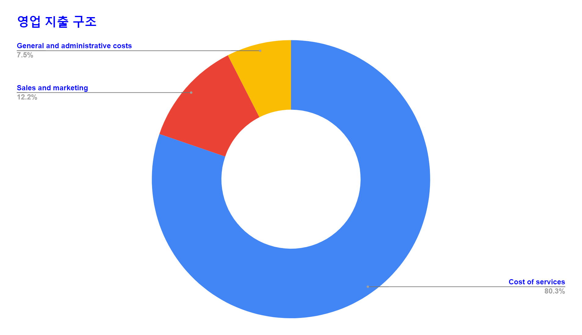* 서비스 비용이 80% 정도로 가장 큰 비중을 차지한다. 서비스 비용은 주로 인건비로 추정된다.