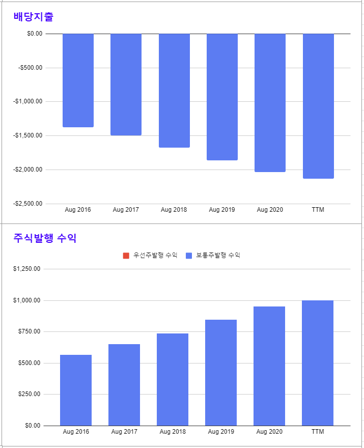 * 배당 지출도 꾸준히 증가하고 있다.