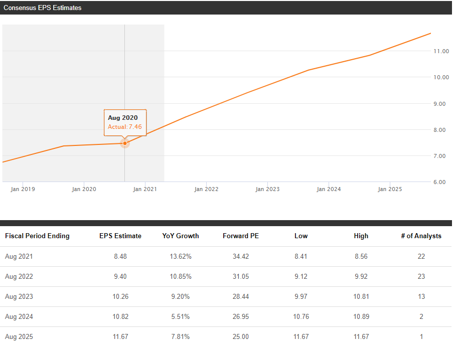 * 애널리스트들은 향후 2년간 매출과 순이익이 증가한다고 예상하고 있다.