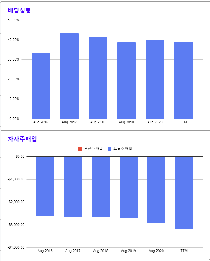 * 자사주 매입 규모가 꾸준히 증가하고 있다.