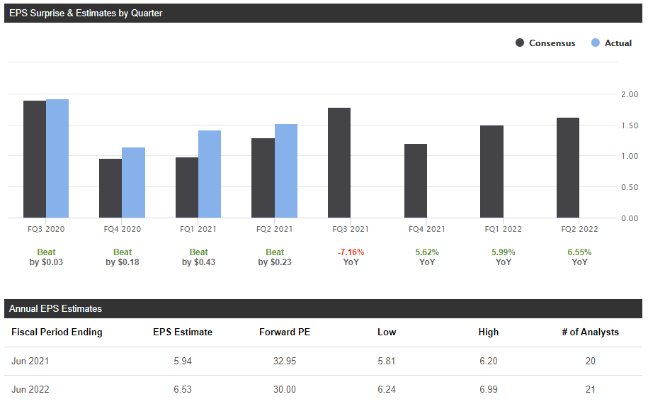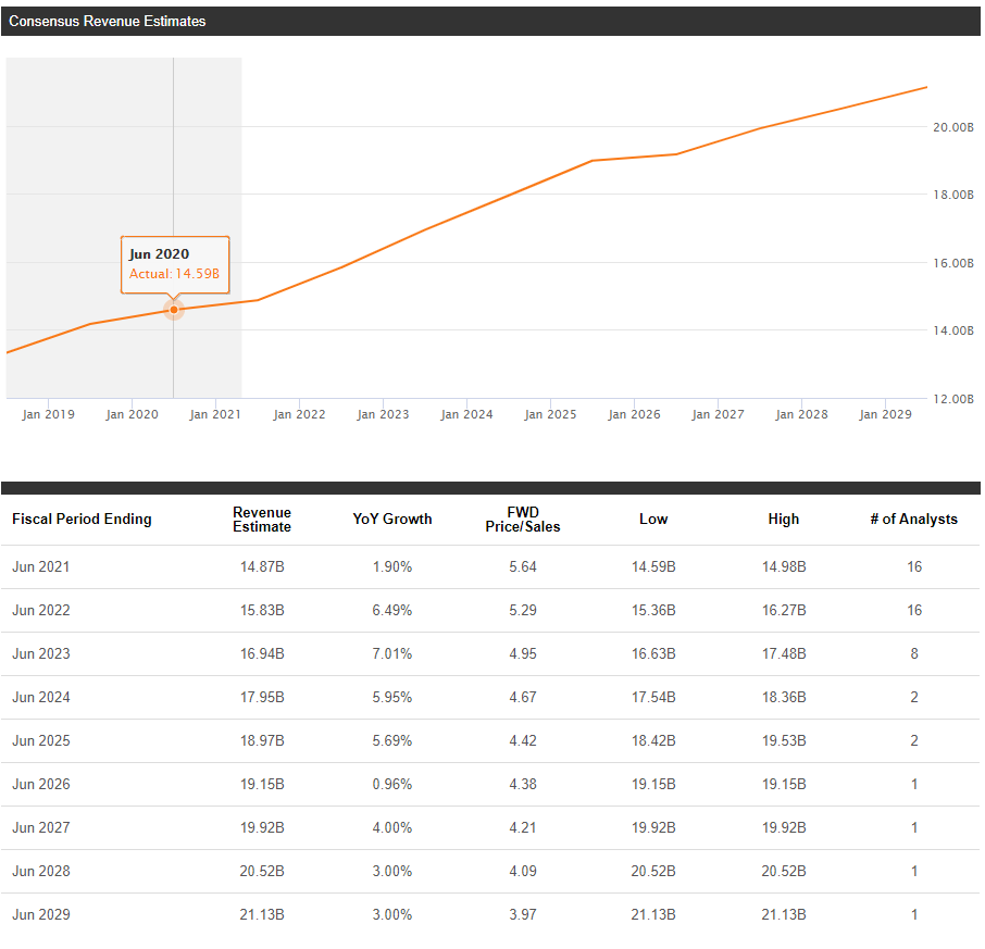 * 애널리스트들들은 평균적으로 올해 전년대비 EPS가 0.41% 성장, 매출은 1.90% 성장할 것으로 전망하고 있다.