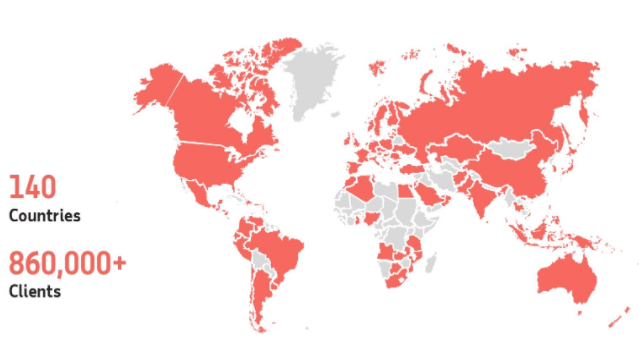 * 140개 이상의 다양한 국가에서 86만 명 이상의 고객을 보유하고 있으며, 다양한 규모, 업종의 사업가(고용주)들과 협업하고 있다.