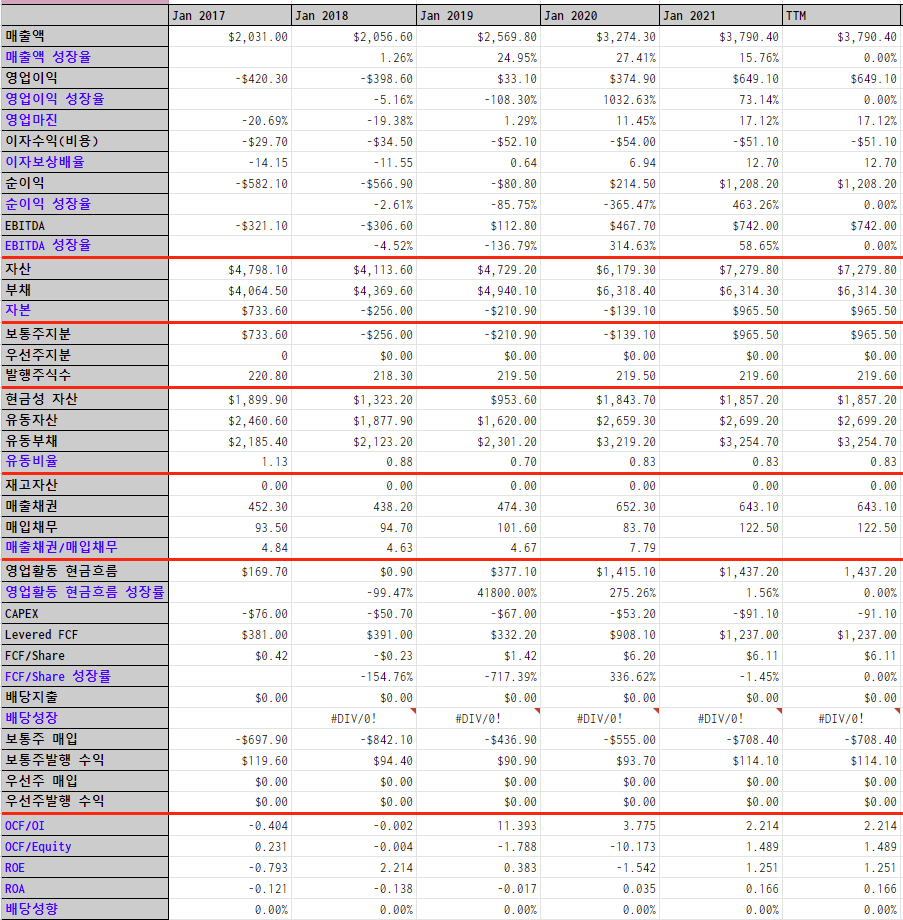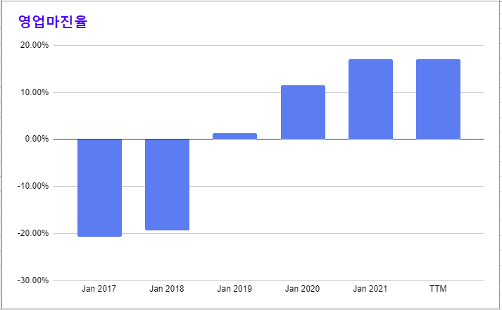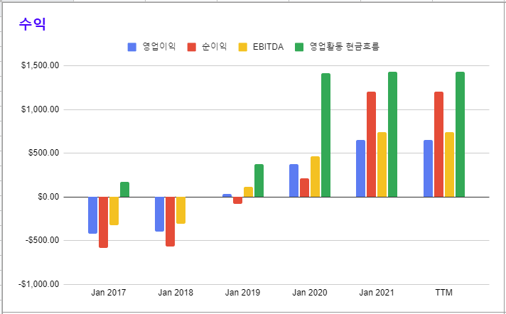 * 2018년을 기점으로 영업이익의 흑자전환과 함께 실적이 급격히 개선되었고 그 이후부터는 이익이 급격히 성장했다.