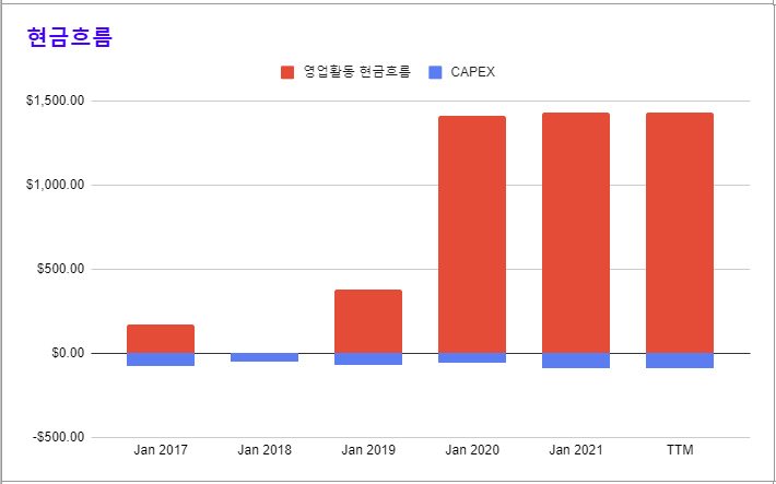 * 2018년 영업이익이 흑자 전환된 시점부터 현금흐름이 개선되었다.