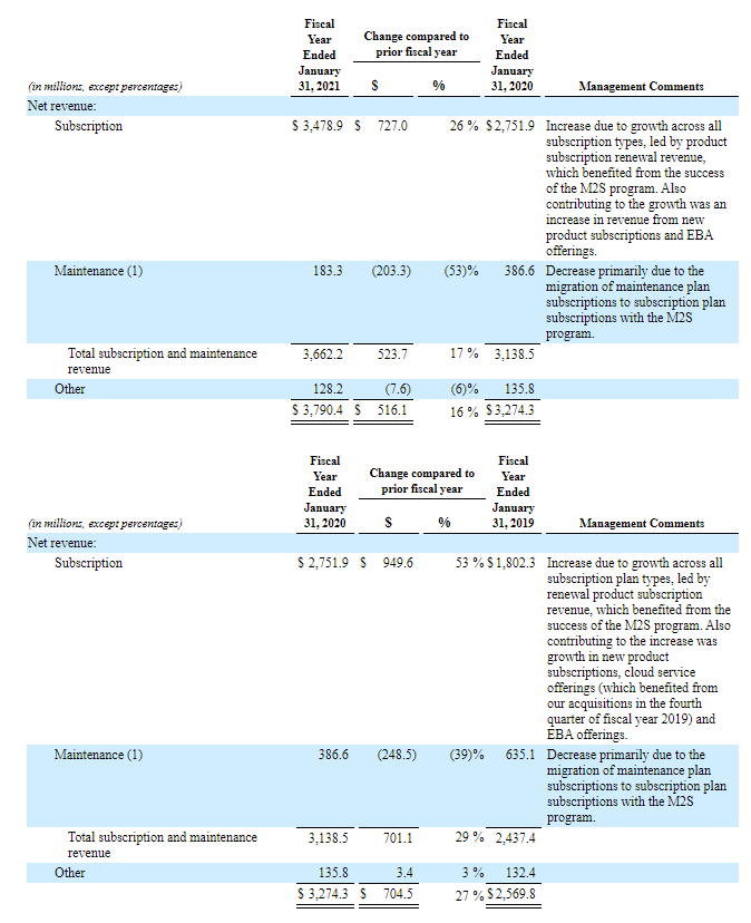 * 이 회사의 대부분의 소프트웨어와 서비스는 구독 형태로 판매하기 때문에 대부분의 매출은 구독료로부터 발생한다.