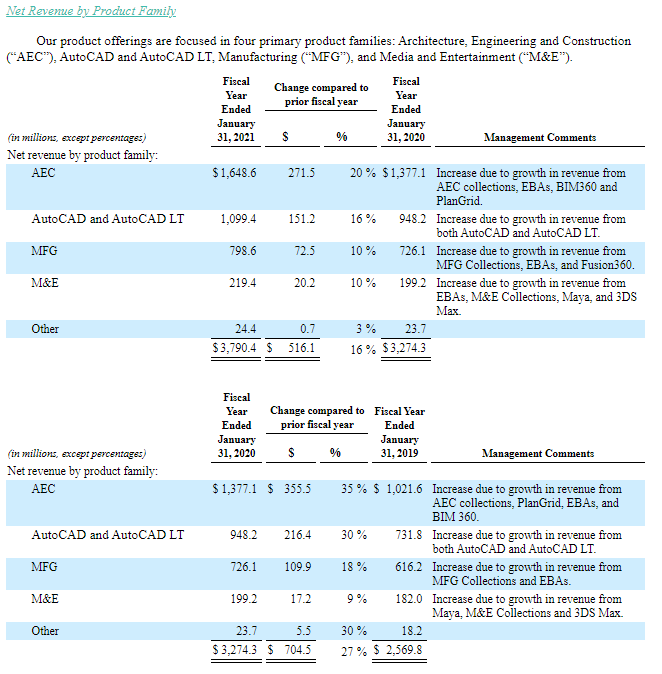 * 오토케드 솔루션의 경우 전년도 대비 16%의 매출이 증가했다.