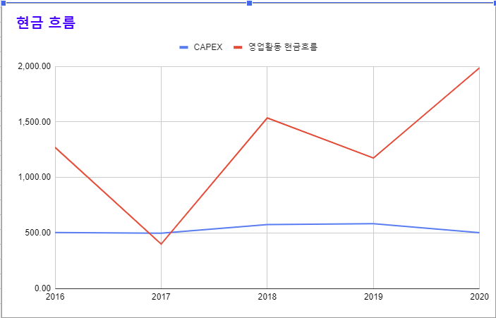 * 현금흐름의 안정성, 재무적 안정성 측면에서 우량한 기업이라 판단됨.