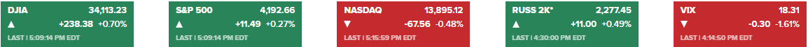 * S&P500 +0.27%, 다우 +0.70%, 나스닥 -0.48%, 러셀2000 +0.49%.