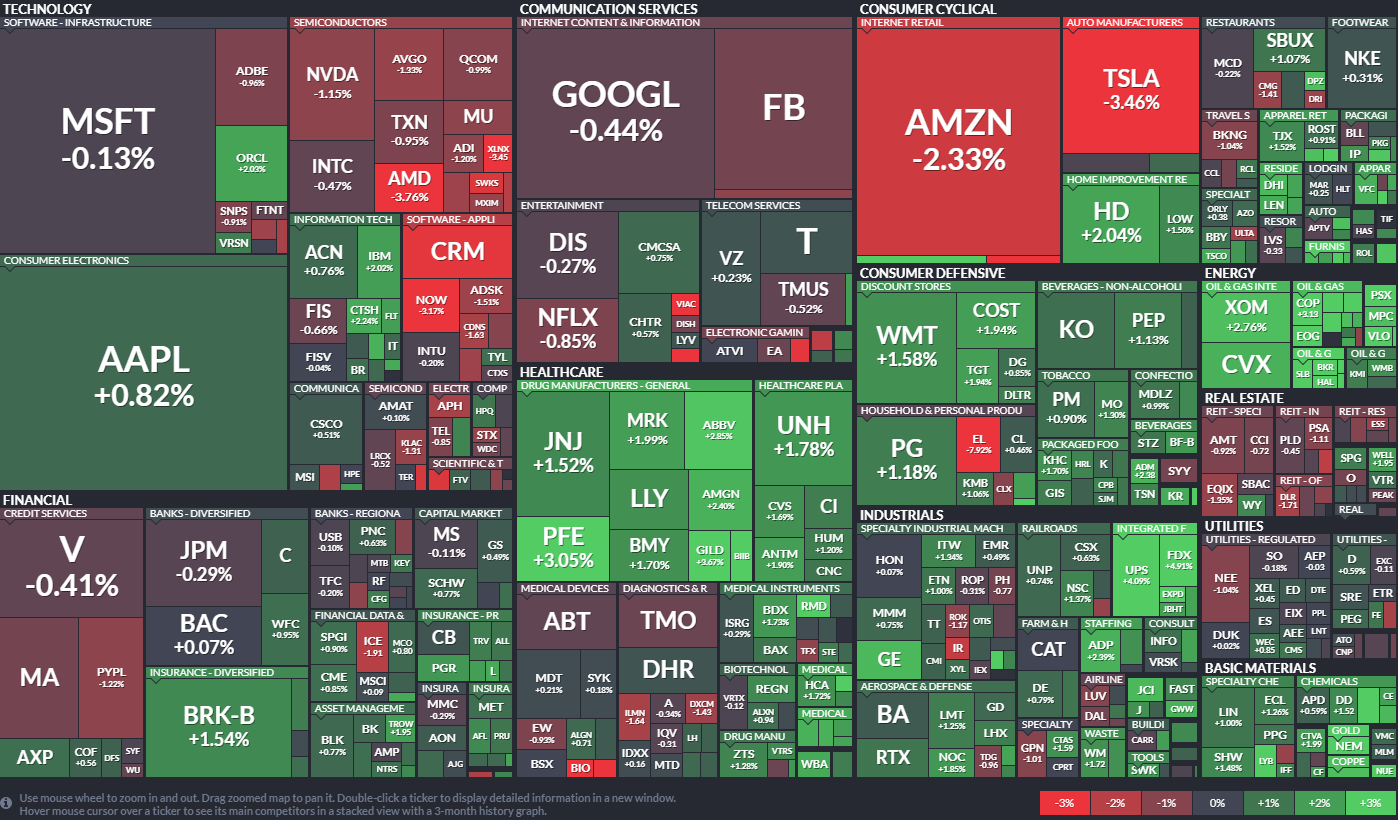 * 소프트웨어 섹터, 반도체 섹터의 하락세, 특히 AMD, 세일즈포스닷컴, Now가 비교적 큰폭으로 하락.