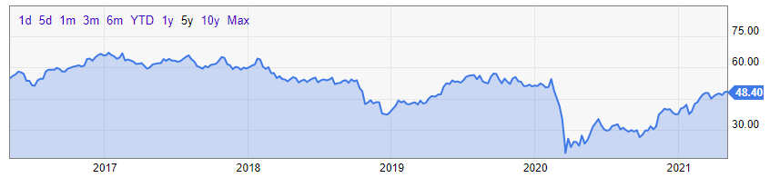 * 지난 5년간 이 회사의 투자자들은 시장수익률에 한참 못 미치는 성과를 달성했다.