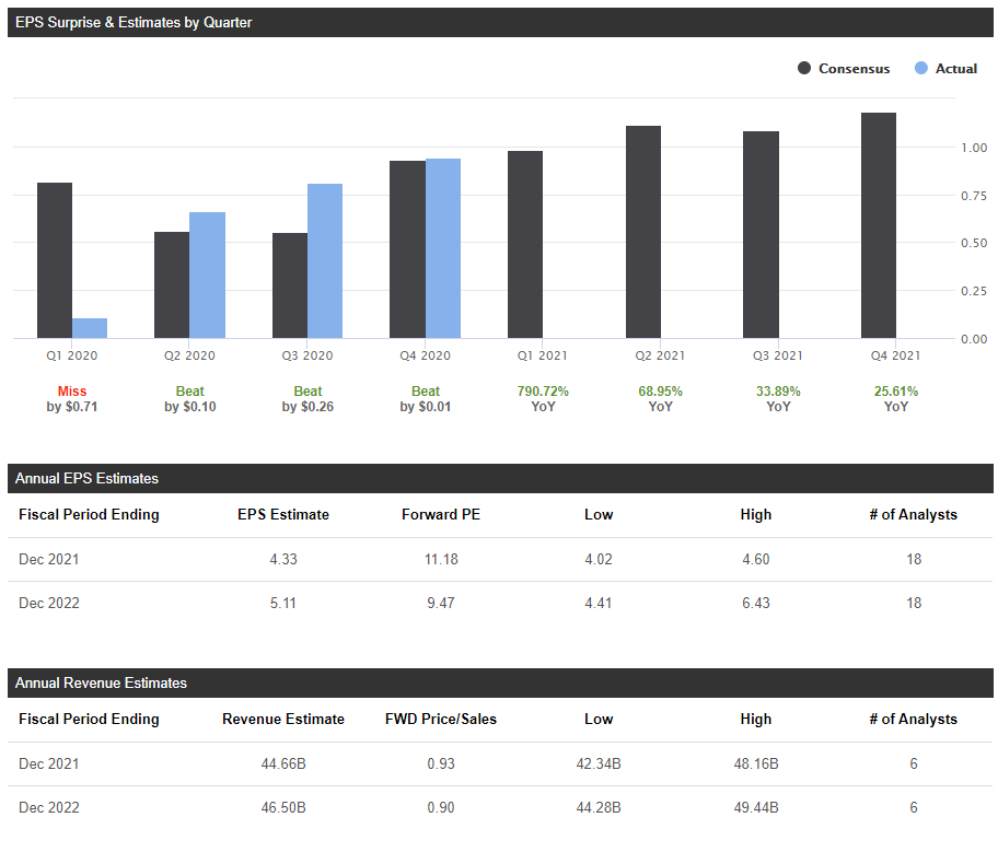 * 18명의 애널리스트들은 올해 EPS가 전년대비 71.78% 상승할 것으로 보고, 매출은 2.12% 증가할 것으로 보고 있다. 전년도 1분기 어닝 쇼크를 기억하자..