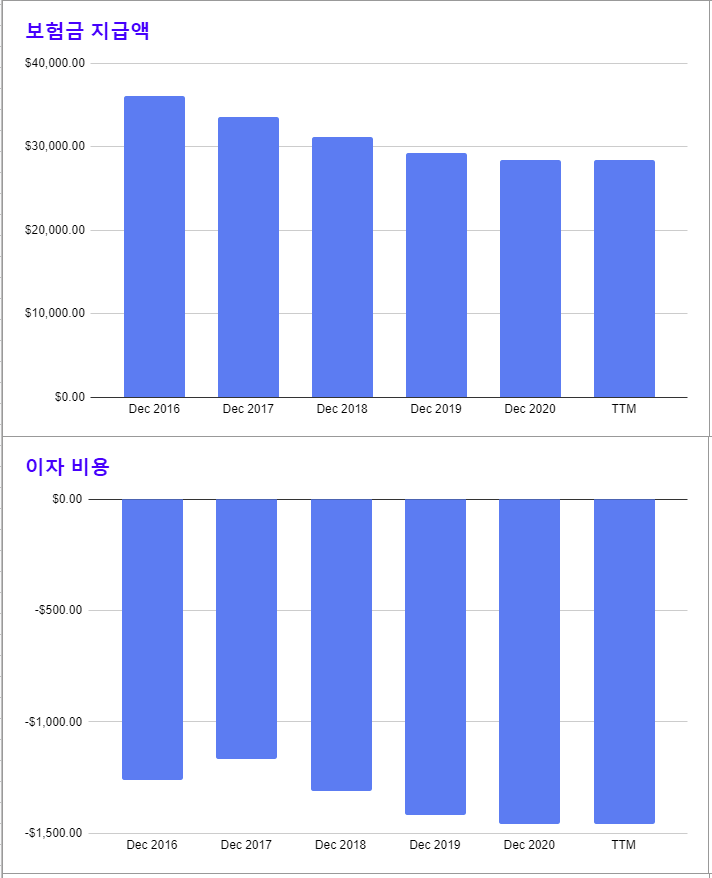 * 매출(보험 판매)가 줄면서 동시에 보험금 지급액도 줄어든 것이라 추정된다.