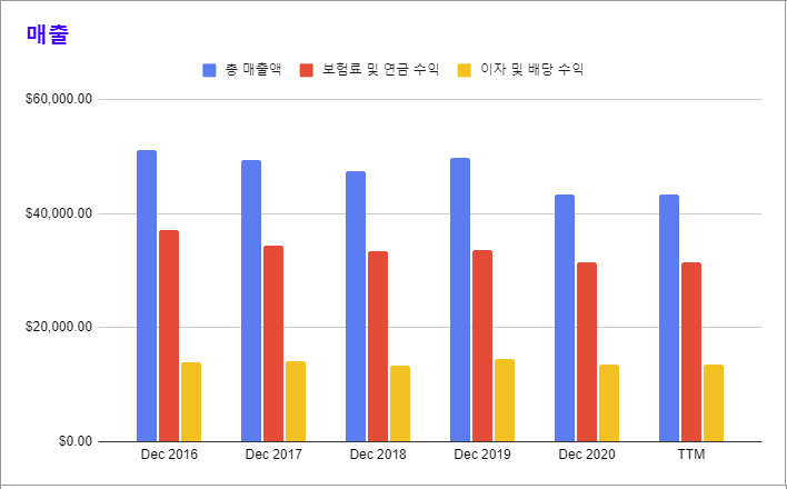 * 이 회사는 일반 보험 사업, 생명 및 은퇴(연금) 사업을 하고 있다.