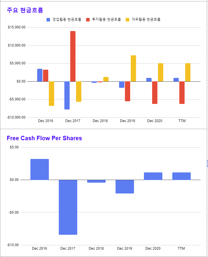 * 2017년도에 무슨일이 있었던 것일까? 그 이후 회사가 이상해졌다. 영업활동 현금흐름, 순이익 등이 박살이 났다.