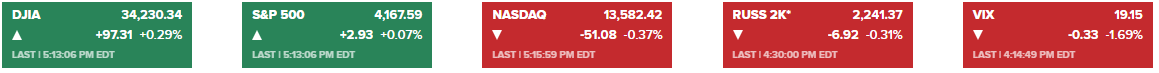 * 다우 +0.29%, S&P500 +0.07%, 나스닥 -0.37%, 러셀2000 -0.31%