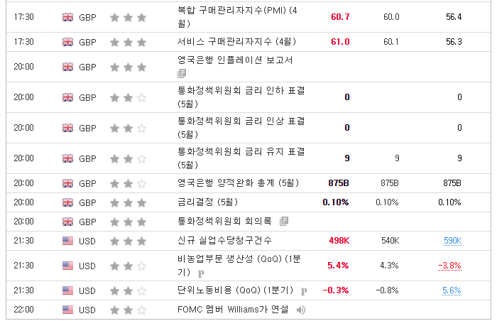 * 영국의 기준금리는 동결되었다. (0.10%)