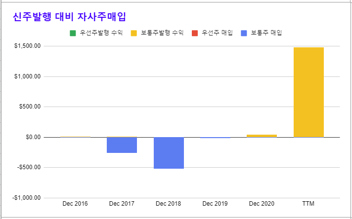 * 기업의 배당 지출은 계속해서 증가하고 있지만, 자사주 매입의 규모는 2019년 이후 많이 줄어든 모습임.