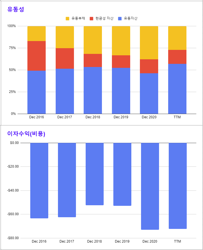 * 2020년 말 기준 유동성 리스크가 존재했으나, 증자를 통한 자본 조달과 단기부채 상환을 통해 유동성 리스크가 어느정도 까지는 완화된 모습을 보이고 있다.