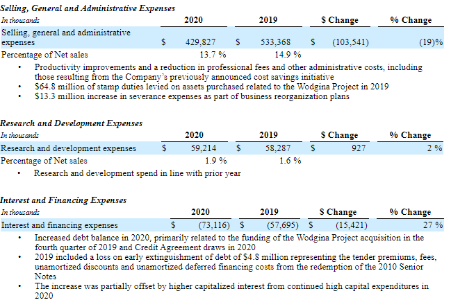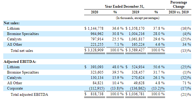 * 20년 리튬 사업의 매출은 전년대비 16% 증가했고, 촉매재 사업의 매출은 25% 증가했다.